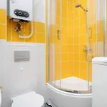 A fully furnished kitchen at the property features a microwave oven, a refrigerator, and kitchenware. Self-catering facilities also include tea/coffee making equipment. Serving European specialities, Hycka Restaurant is around 5 minutes' drive away. The apartment is right at the nearest bus stop Rondo Srodka.